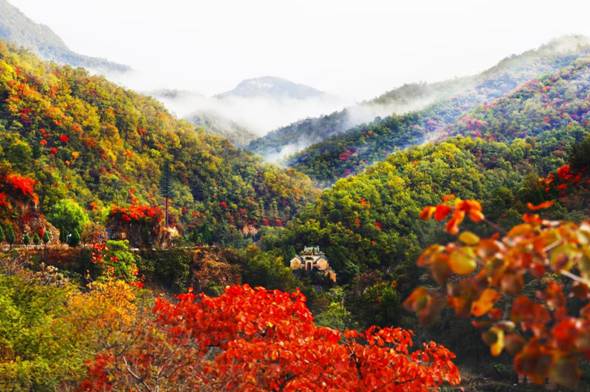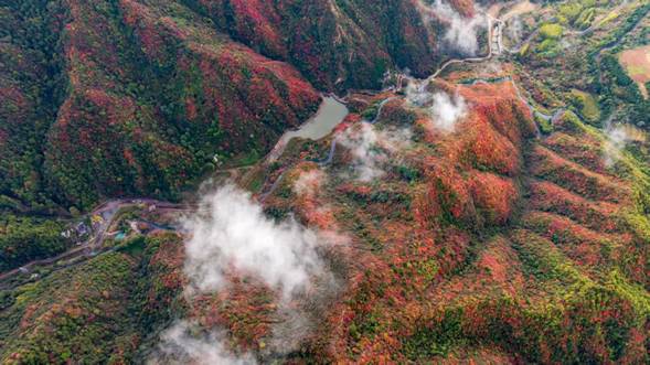 霜降山水清,王屋十月时。随着霜降节气的临近,王屋山万山红遍,层林尽染,正如白居易诗中所写:石泉碧漾漾,岩树红离离。如诗如画的红叶进入最佳观赏期。