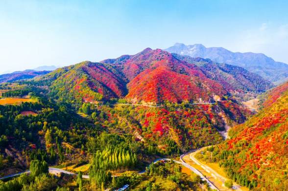 王屋山地处河南省济源市,这里森林茂密,植被丰富,拥有集中连片的原始次生林,森林覆盖率高达98%以上,是河南省植物物种最丰富的森林之一。每年10月中旬至11月中旬,是王屋山红叶最为动人的时期。在此期间,黄栌、槭树、枫树、丹枫、火炬树、红叶李等多种观赏型红叶树种相继“换装”,从山脚至山顶,由浅红至深绛,色彩斑斓,美不胜收。特别是经过霜打之后,叶片更加红艳夺目,在蓝天白云与青松翠柏的映衬下,构成一幅浓墨重彩的天然画卷。游客漫步山间步道,可近距离欣赏红叶与岩壁相映成趣的景致;登临高处,极目远眺,可见整片山谷仿佛披上了红色的锦绣,气势恢宏,令人心旷神怡。