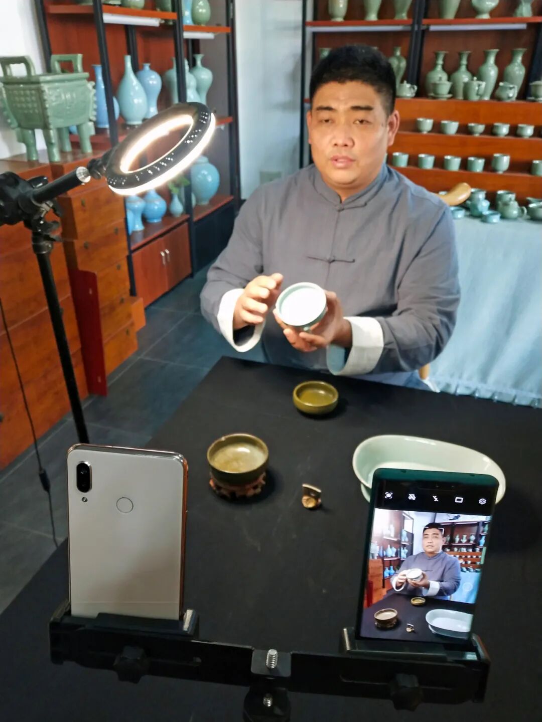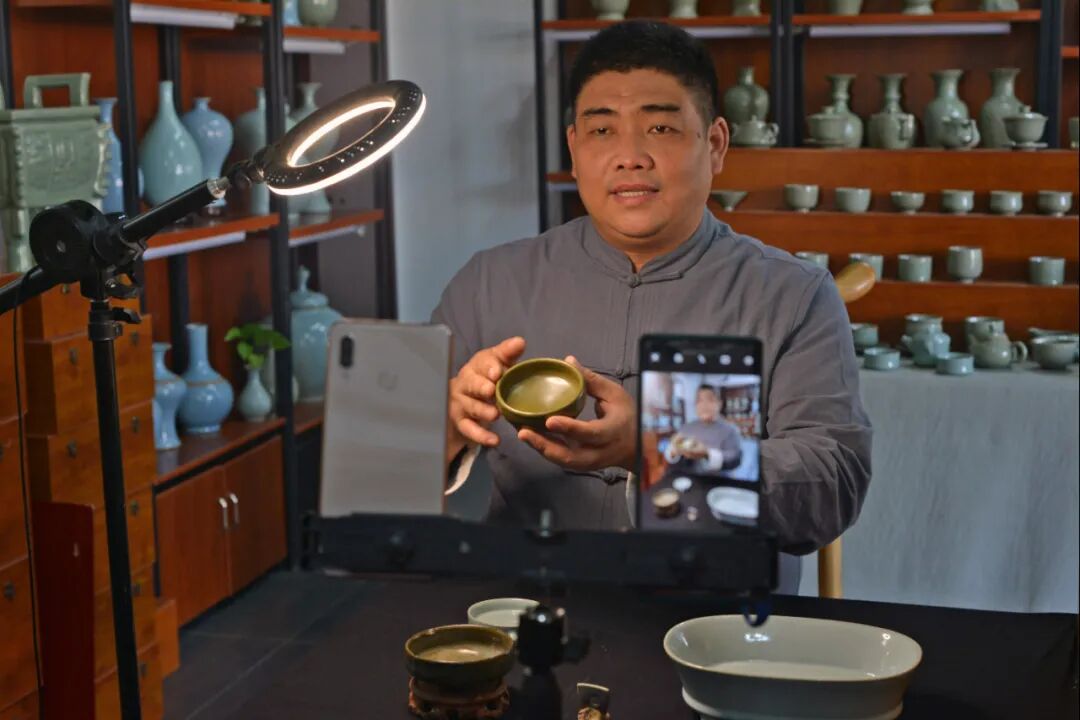 平社晓通过直播为粉丝讲解汝瓷知识