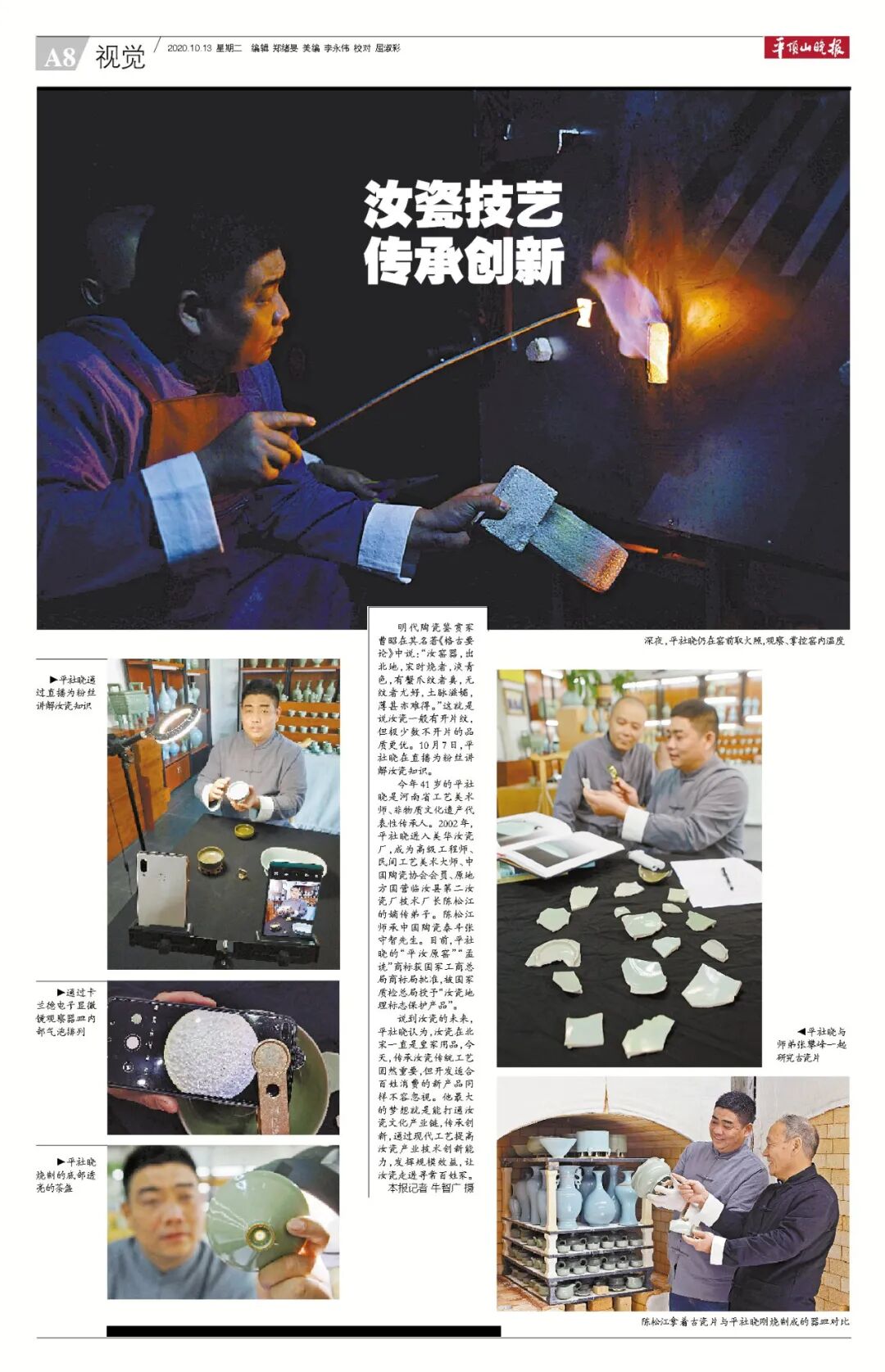 说到汝瓷的未来,平社晓认为,汝瓷在北宋一直是皇家用品,今天,传承汝瓷传统工艺固然重要,但开发适合百姓消费的新产品同样不容忽视。他最大的梦想就是能打通汝瓷文化产业链,传承创新,通过现代工艺提高汝瓷产业技术创新能力,发挥规模效益,让汝瓷走进寻常百姓家。本报记者牛智广摄